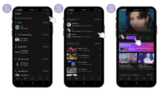 1. Ve al buscador de la aplicación e introduce el nombre de V para buscar su perfil.